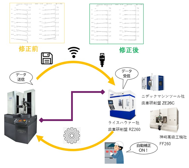 測定機と加工機をネットワーク接続し、測定結果を自動的に加工機へフィードバック
